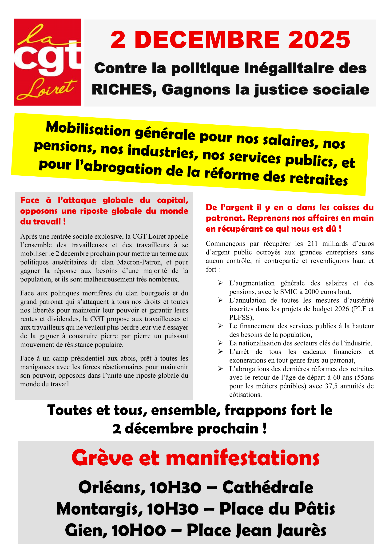 Toutes et tous, ensemble, frappons fort le 2 décembre prochain !