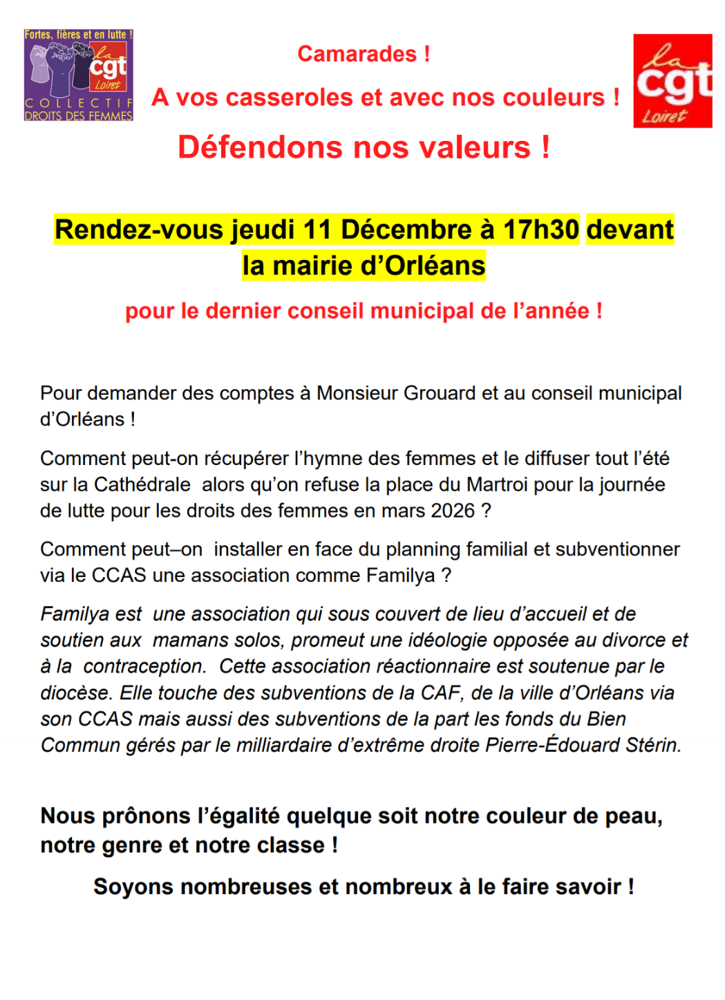 Comment peut-on récupérer l’hymne des femmes et le diffuser tout l’été sur la Cathédrale alors qu’on refuse la place du Martroi pour la journée de lutte pour les droits des femmes en mars 2026 ?