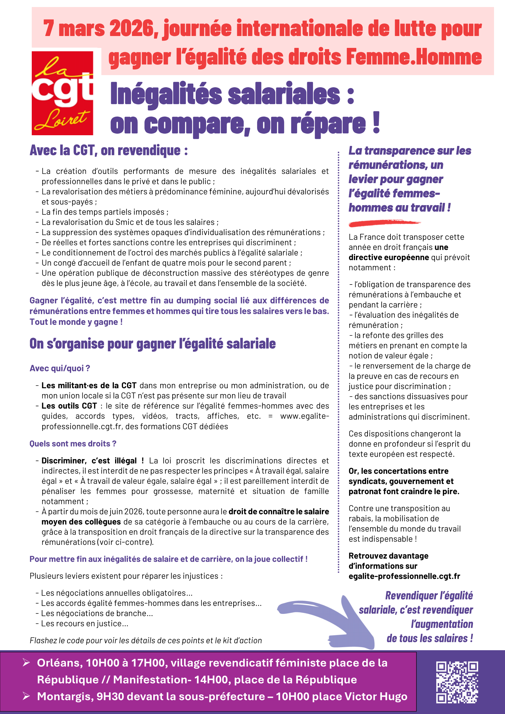 Tract UD CGT Loiret  Mobilisation 7 mars  Droits des femmes  et tract ud Tract UD CGT Loiret Mobilisation 7 mars Droits des femmes et tract ud