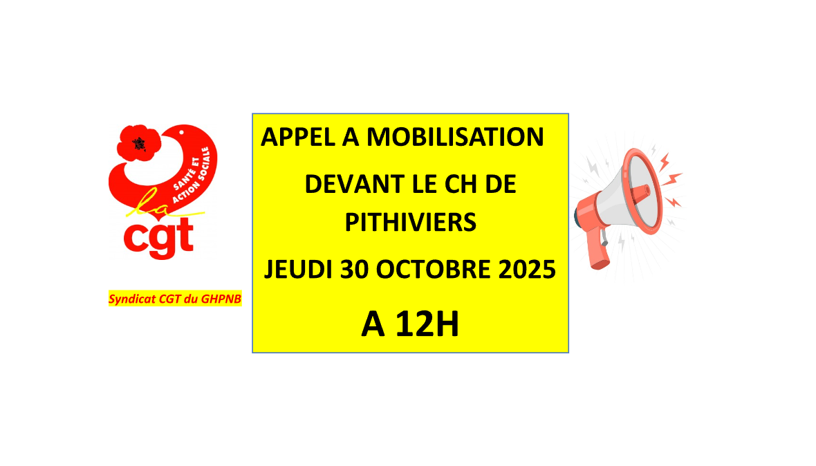 👉 Soyons nombreux jeudi 30 octobre à 12h devant l’Hôpital de Pithiviers !