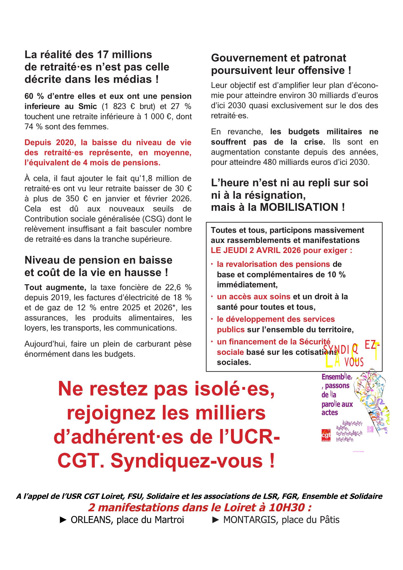 🚨 Toutes et tous ensemble — actifs et retraité·e·s — mobilisons-nous !