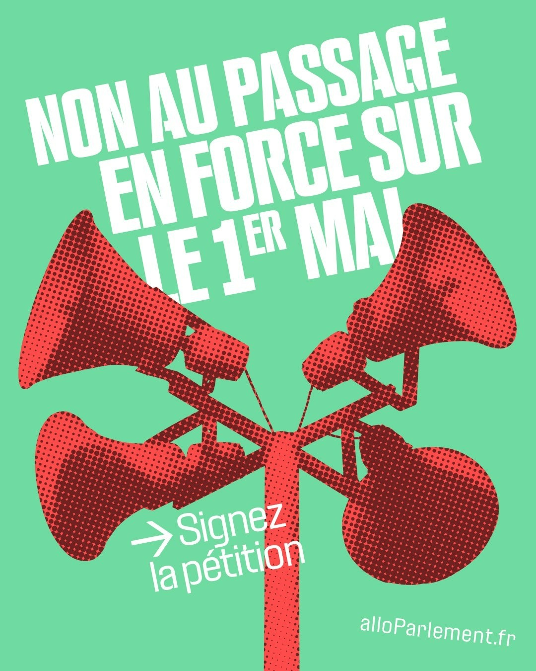 Ce vendredi, les dĂ©putĂ©s macronistes, LR et RN ont organisĂ© un coup de force inacceptable contre le monde du travail. Pour passer en force leur loi sur le 1er mai, ils ont fait un 49-3 parlementaire en votant une motion de rejet pour annuler les 170 amendements dĂ©posĂ©s par la gauche. Ainsi une commission mixte paritaire pourrait ĂŞtre rĂ©unie dès mardi 14 avril 16h30, avec une adoption de la loi dans la foulĂ©e sans mĂŞme qu'elle ait Ă©tĂ© dĂ©battue par l’assemblĂ©e nationale !