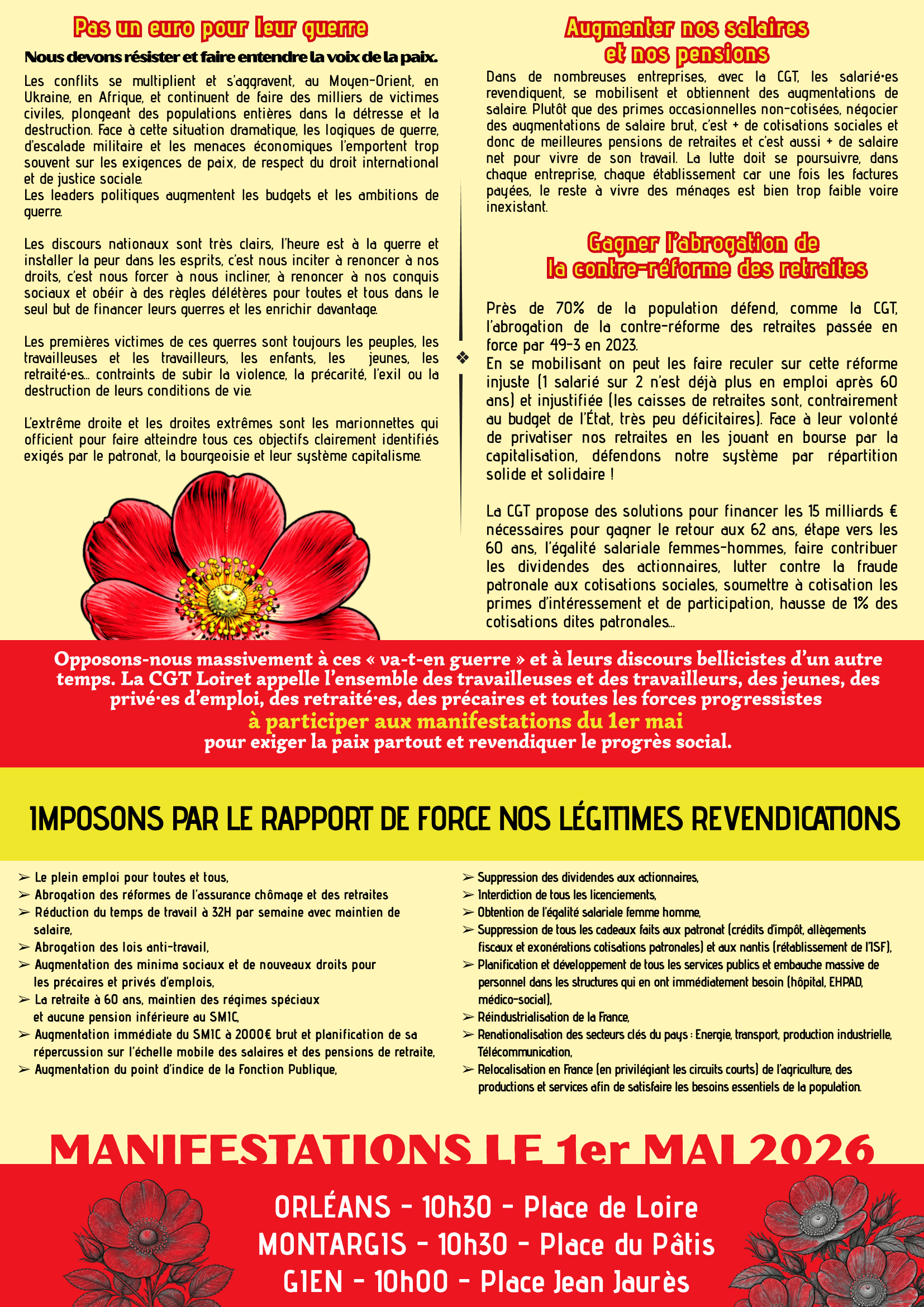 📣 Mobilisation pour le 1er Mai 2026 dans le Loiret