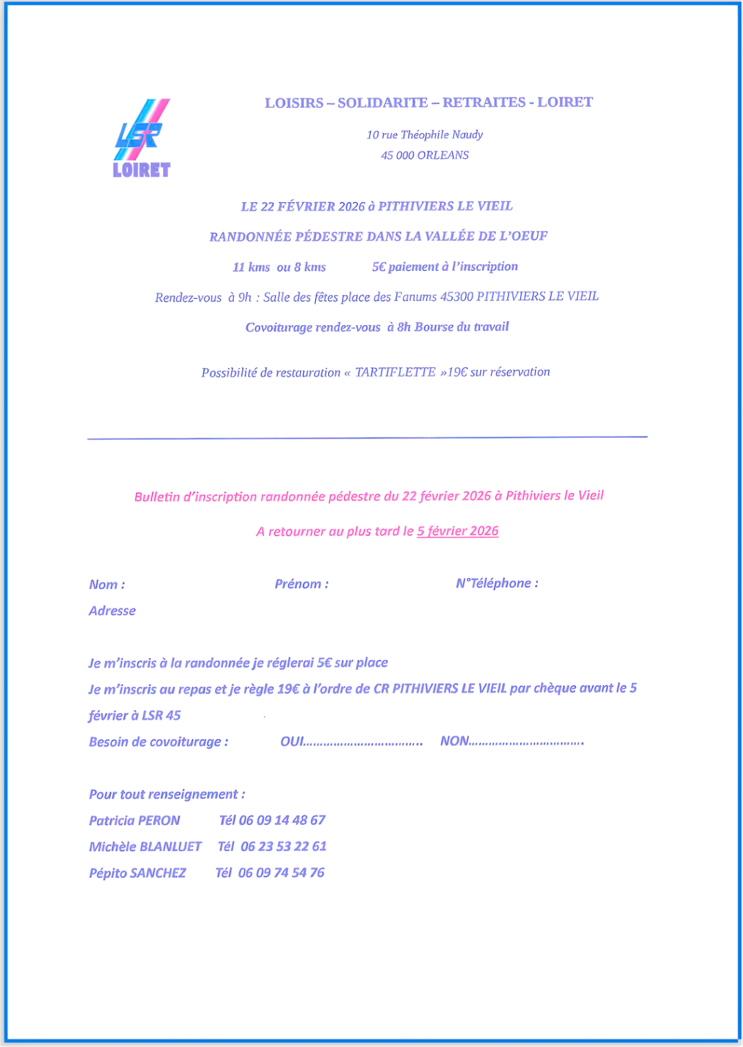 LOISIRS – SOLIDARITÉ – RETRAITES – LOIRET